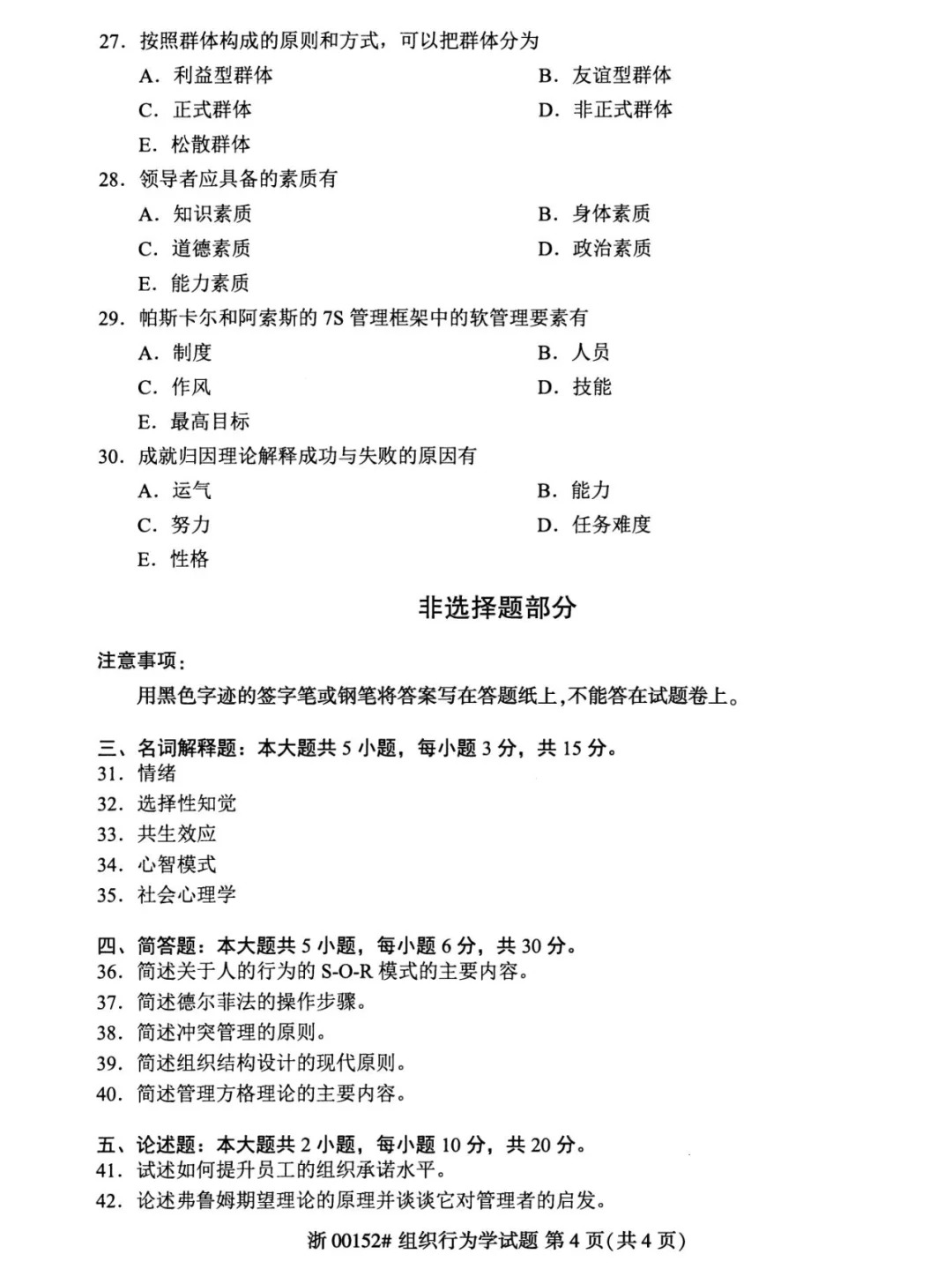 本文标签:重庆自考 00152 组织行为学 2024年4月重庆组织行为学自考真题