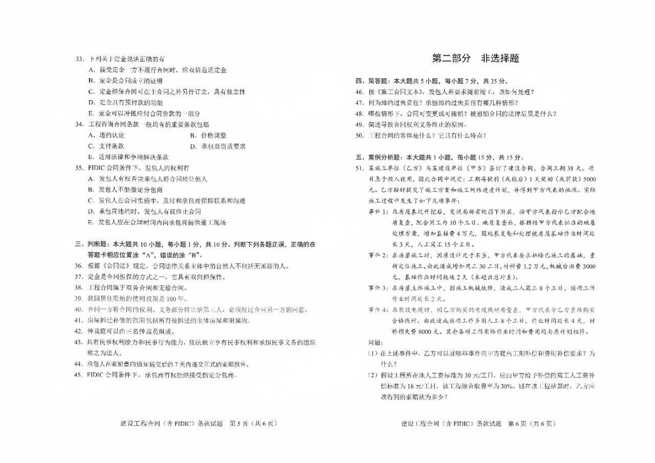 本文标签:重庆自考 04231 建设工程合同(含FIDIC条款 2024年4月重庆建设工程合同自考真题