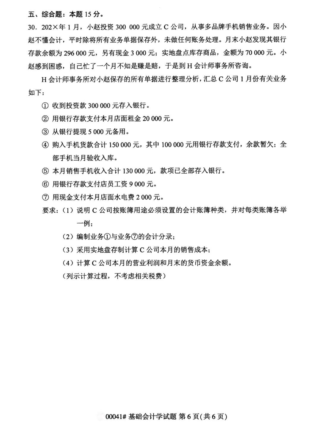 本文标签:重庆自考 00041 基础会计学 2024年4月重庆自考基础会计学真题