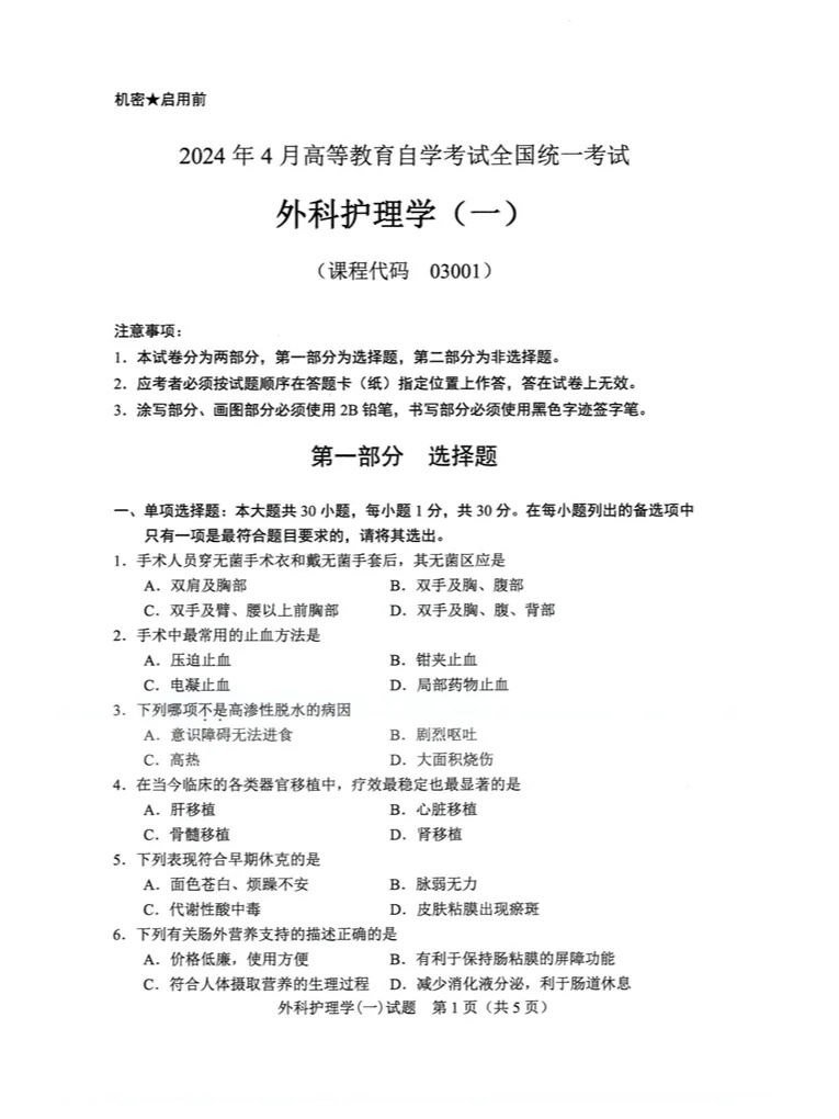 本文标签:重庆自考 护理学 101101 2024年4月重庆外科护理学(一)自考真题