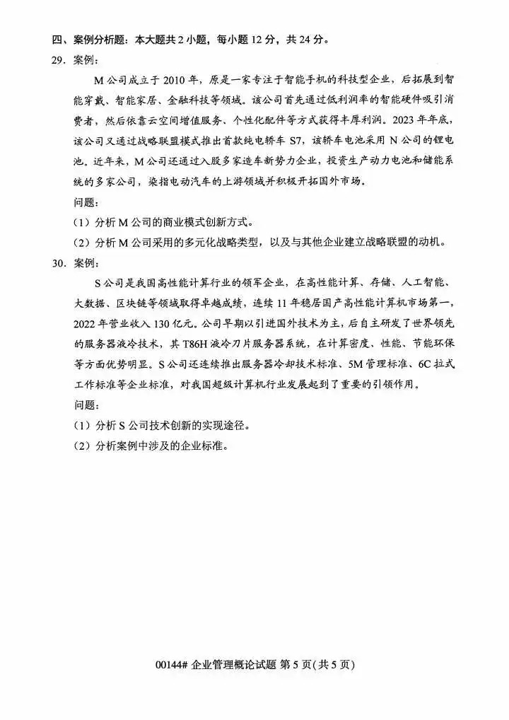 本文标签:重庆自考 00144 企业管理概论 2024年4月企业管理管理重庆自考真题