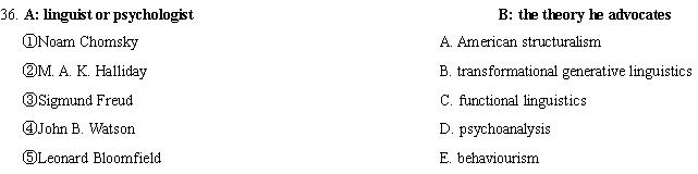 Directions: This section consists of three groups of pairs listed in two columns, A and B. You are to match the one marked ①, ②, ③, ④, or ⑤ in Column A with the one marked A, B, C, D, or E in Column B. One point is given to each pair you match correctly.