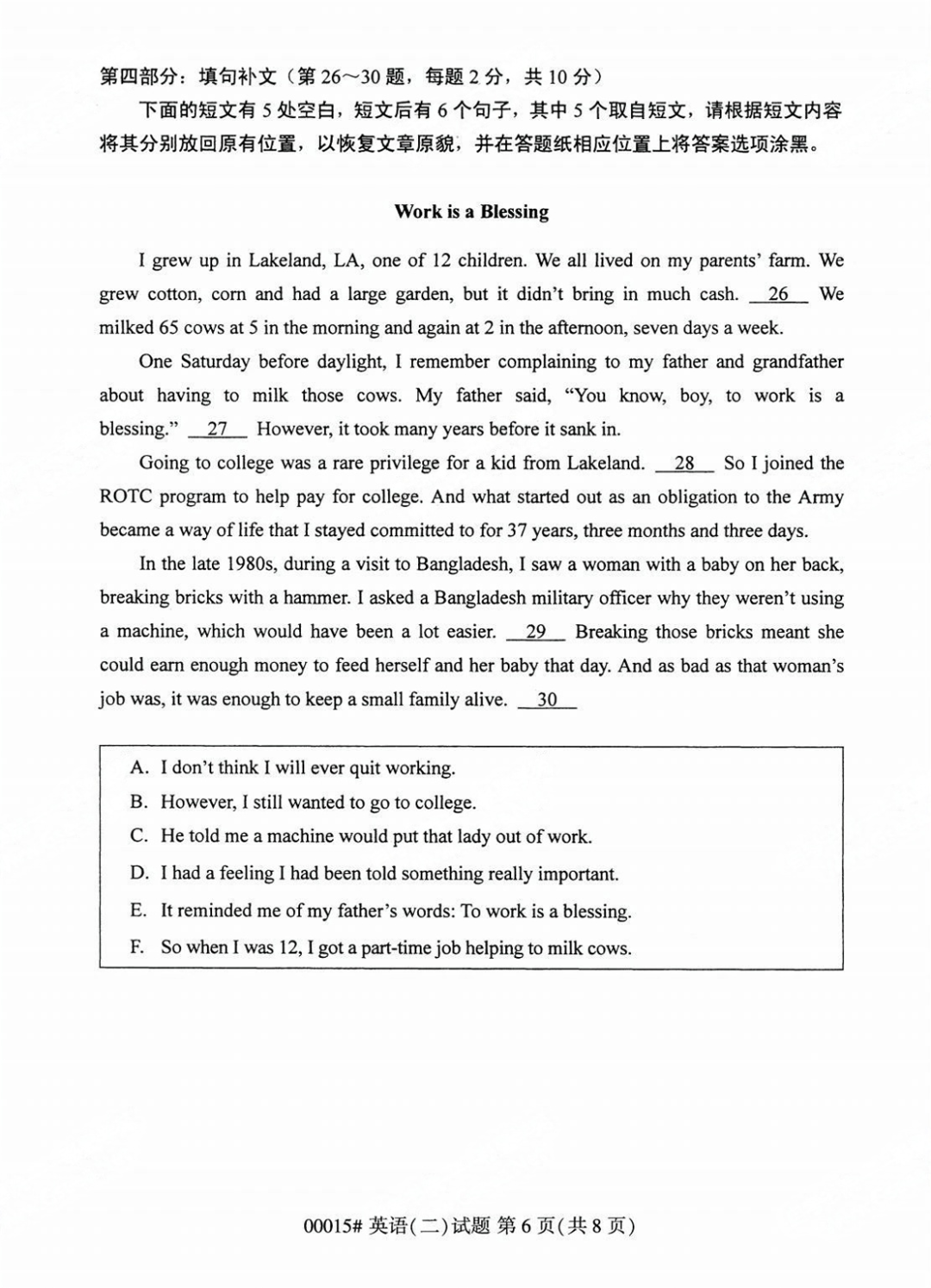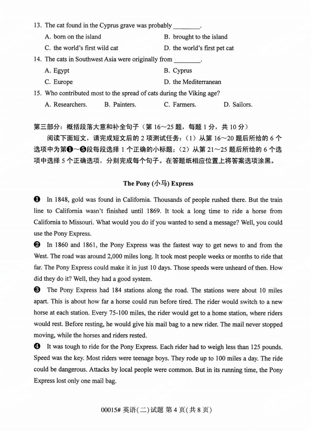 本文标签:重庆自考 公共课 2025年4月重庆自考《00015英语二》真题和答案!