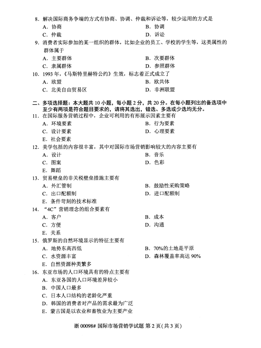 本文标签:重庆自考 00098 国际市场营销学 2024年4月国际市场营销学00098重庆自考真题