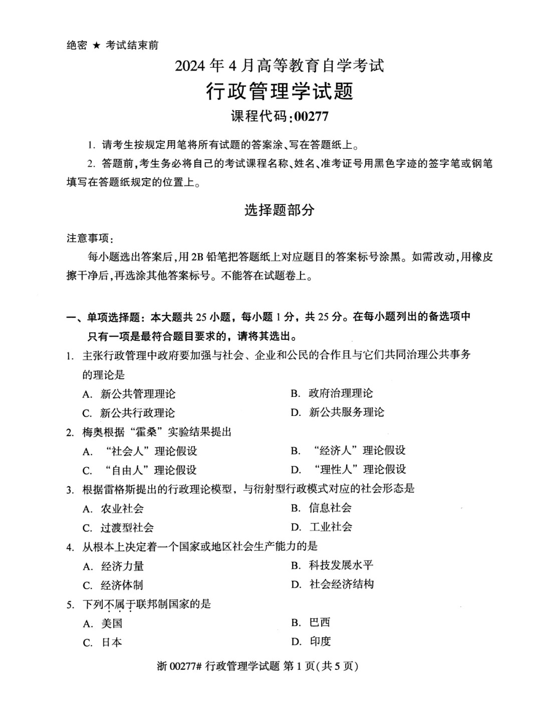 本文标签:重庆自考 00277 行政管理学 2024年4月重庆行政管理学自考真题