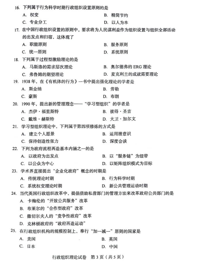 2024年4月重庆行政组织理论自考真题